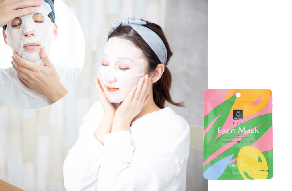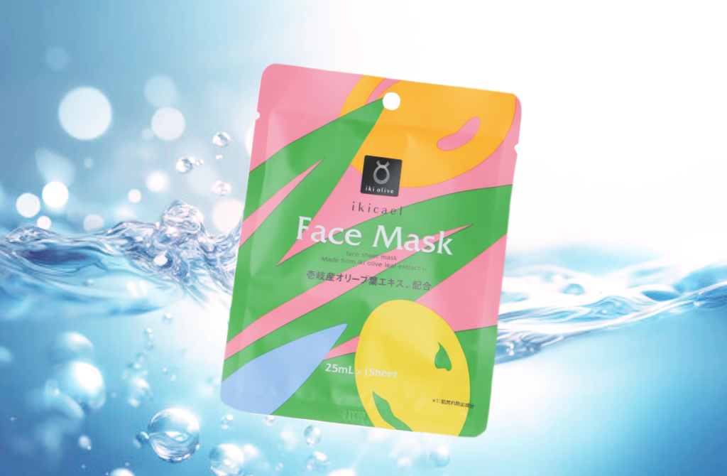 長崎県・壱岐島で育った希少なオリーブの葉から抽出した「壱岐産オリーブ葉エキス」配合の美容フェイスマスク。乾燥、肌荒れ、ハリ不足など現代女性の肌悩みにアプローチ。